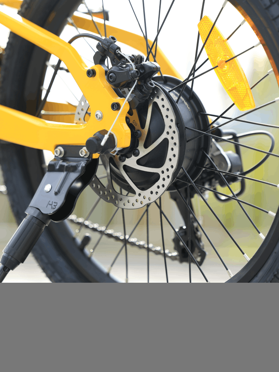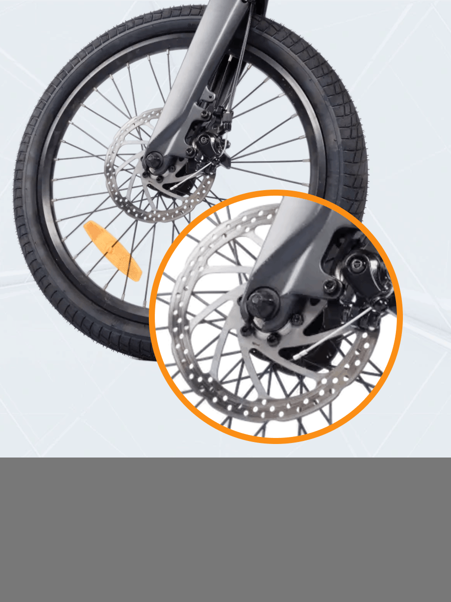 Hydraulische Scheibenbremsen liefern eine kraftvolle und präzise Bremsleistung – für sichere, stabile Kontrolle bei Nässe, im Stadtverkehr und auf täglichen Pendelstrecken.