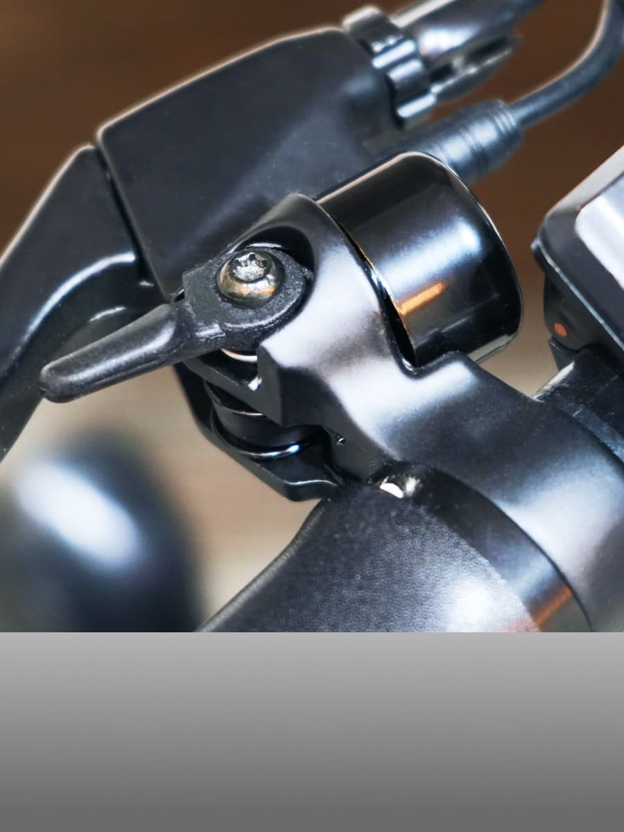 Die integrierte Klingel ist dezent im Lenkerbereich verbaut und jederzeit griffbereit. Sie spart Platz am Cockpit, sorgt für eine aufgeräumte Optik und ermöglicht ein schnelles, klares Signal im Stadtverkehr – ideal für den täglichen Weg zur Arbeit.