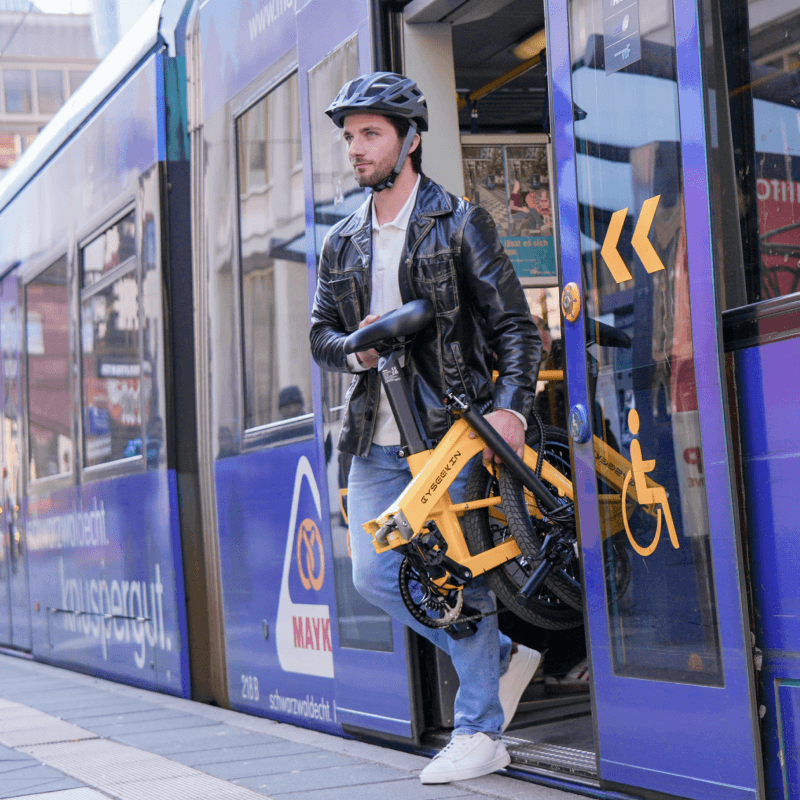 „Machen Sie Ihr Rad mit zwei einfachen Handgriffen transportfähig. Ihr perfekter Begleiter für die Stadt und den Urlaub.“