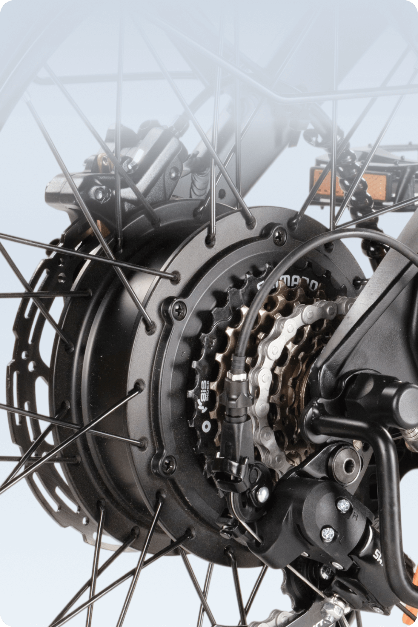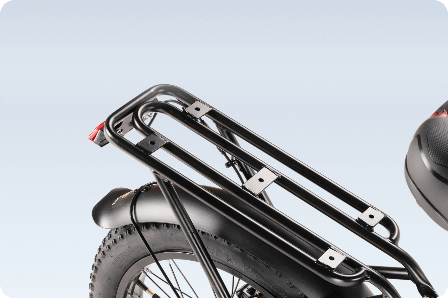 Die breiten 20 × 3.0 Zoll Reifen absorbieren Unebenheiten spürbar, während die integrierte Federung zusätzliche Dämpfung bietet.